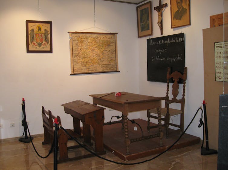 Aula presente en la exposici贸n en Muro de materiales del Arxiu Museu de l'Educaci贸 de les Illes Balears en Inca.