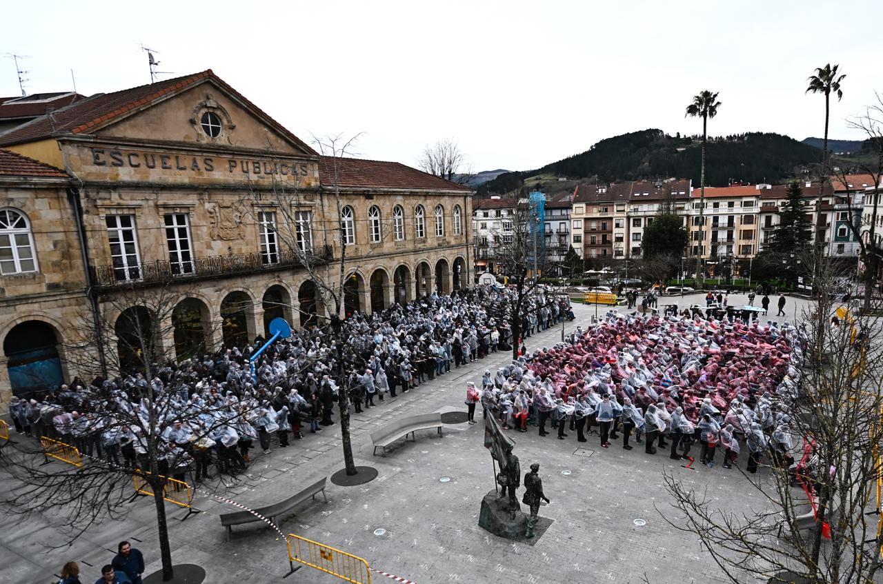 Más de un millar de personas forman un mosaico gigante con el mensaje “Adiós Guggenheim” para celebrar la retirada del proyecto de ampliación en Urdaibai