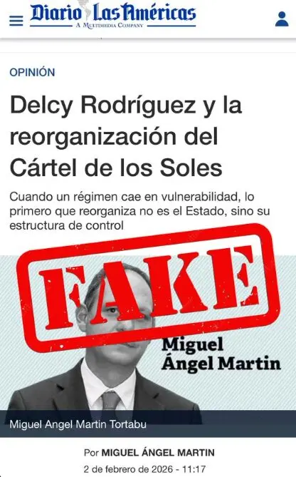 El Gobierno de Venezuela denunció este lunes, a través de su cuenta oficial en la red social X, Miraflores al Momento, la publicación de un artículo de opinión en el Diario Las Américas que vincula de manera falsa a la presidenta encargada de Venezuela, Delcy Rodríguez, con falsos positivos vinculados a supuestas estructuras delictivas.