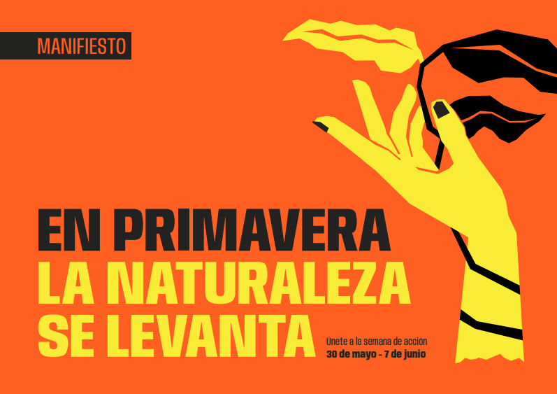 Esta primavera hacemos un llamamiento a organizarnos para exigir la restauraci贸n de nuestros territorios. Un proceso de movilizaci贸n que crezca desde lo local hasta confluir en una semana de movilizaciones por la naturaleza, del 30 de mayo al 7 de junio de 2026. Acciones descentralizadas que transformen la indignaci贸n en acci贸n: renaturalizar, limpiar, cuidar, proteger, movilizar. Un impulso colectivo que conecte luchas, visibilice conflictos y abra horizontes compartidos. Porque cada gesto cuenta, cada acci贸n suma, cada territorio importa, y juntas podemos convertir esta primavera en un punto de inflexi贸n para la vida.